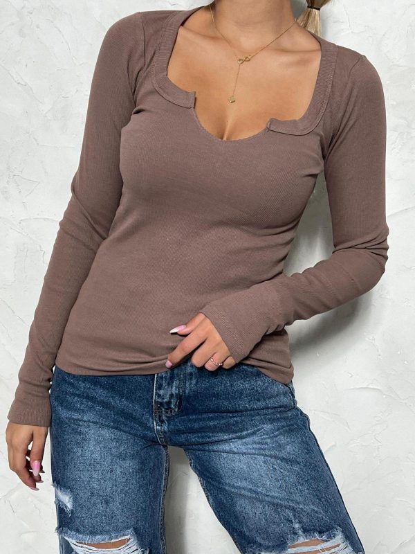 חולצת בייסיק מבד פיין ריב עם מפתח V עמוק