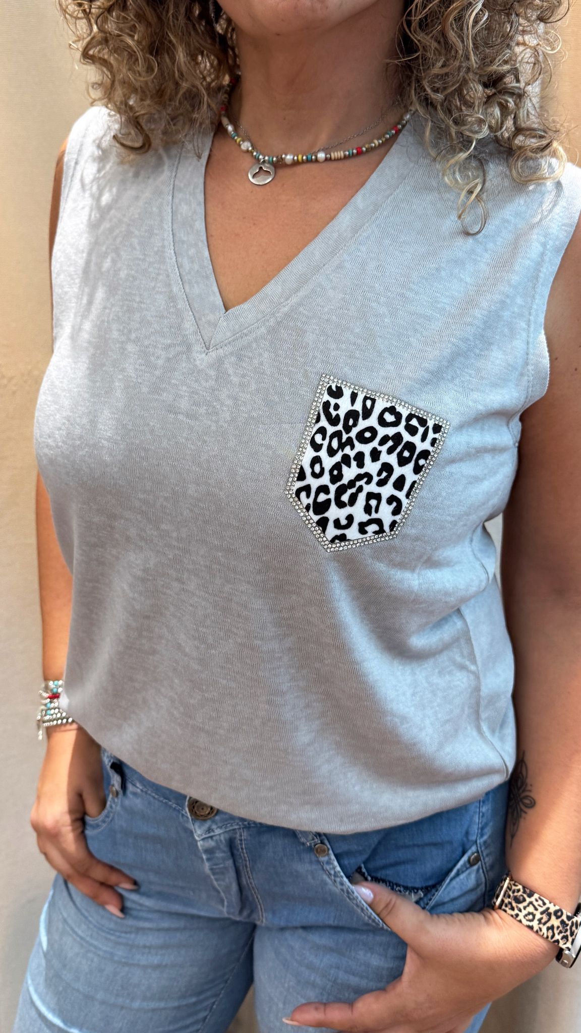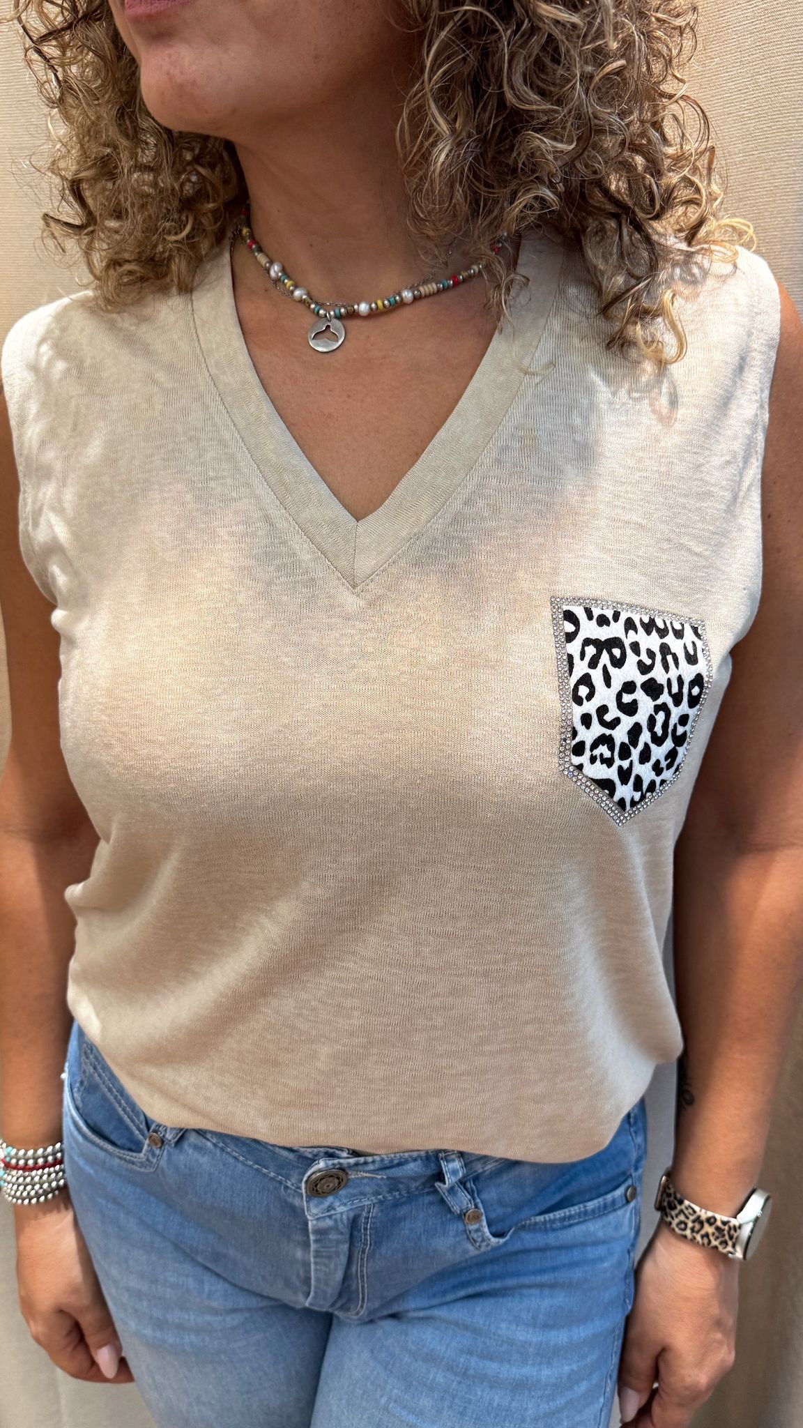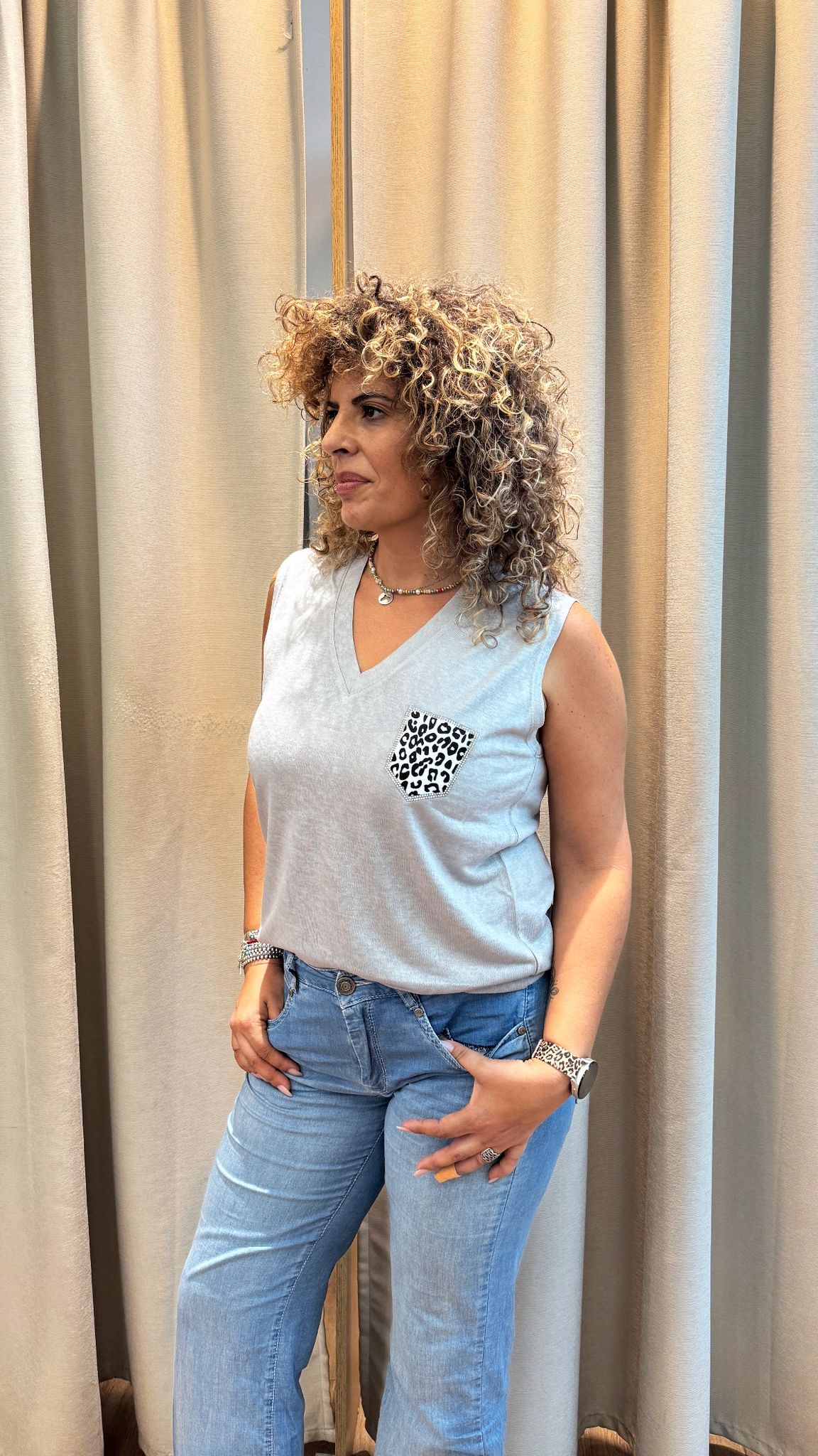 גופיית בייסיק  עם שילוב של הדפס מנומר