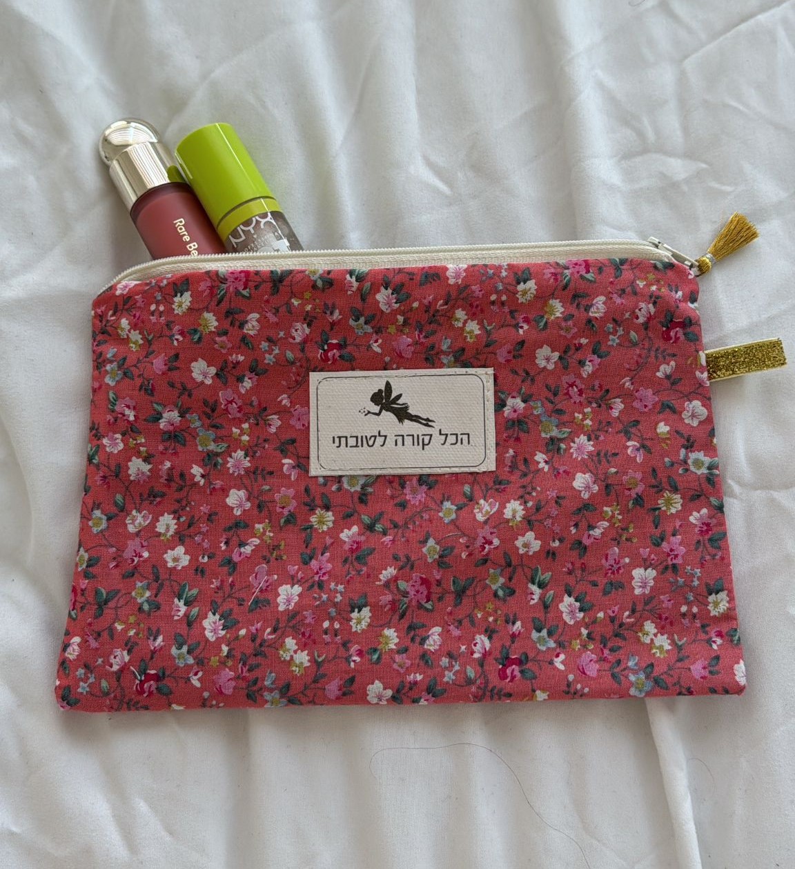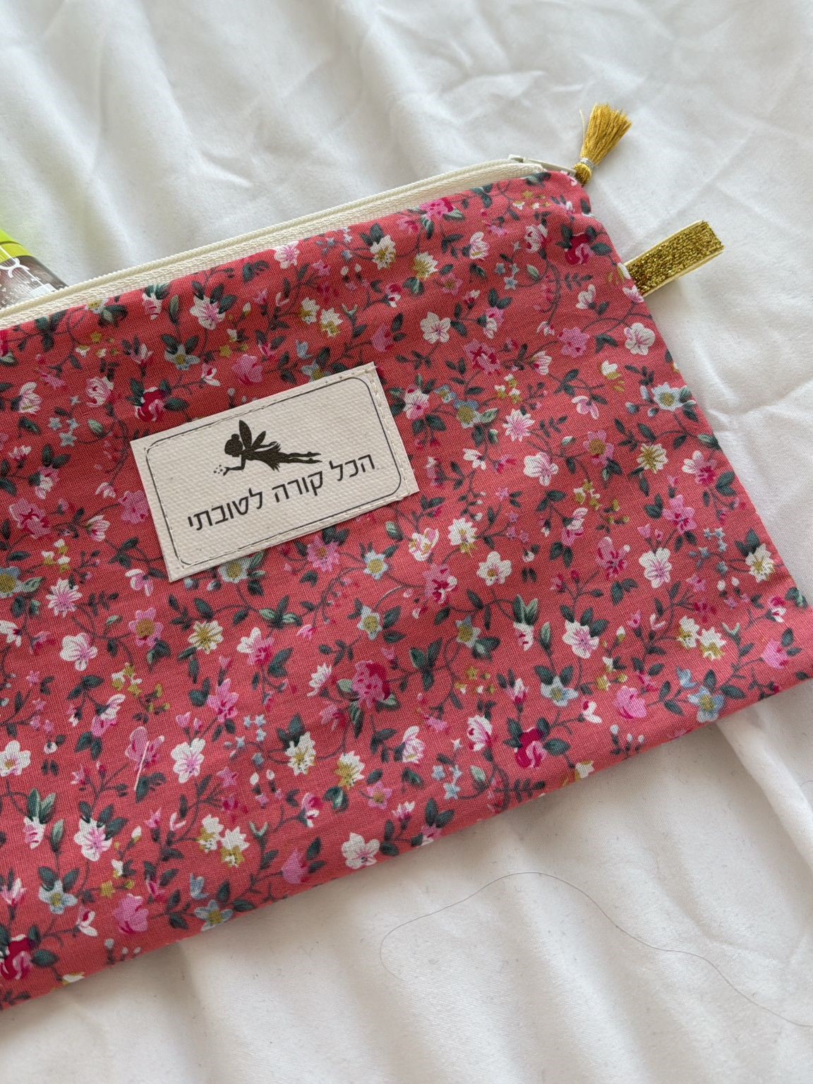 תיק איפור עבודת יד עם משפטי העצמה "הכל קורה לטובתי" "לחלום בלי גבולות" "מגשימה חלומות" מתנה מושלמת לחברה, אמא, סבתא וגם בשבילך מידות 20*14 ס"מ
